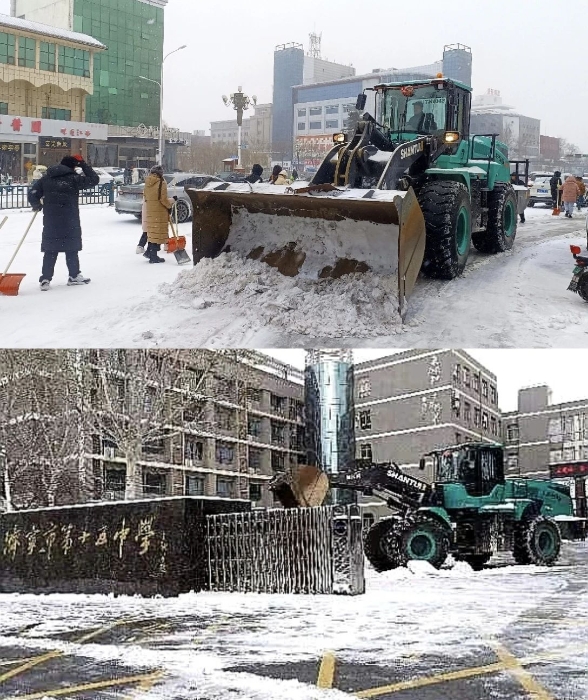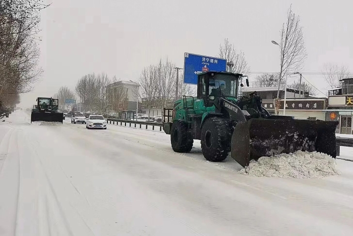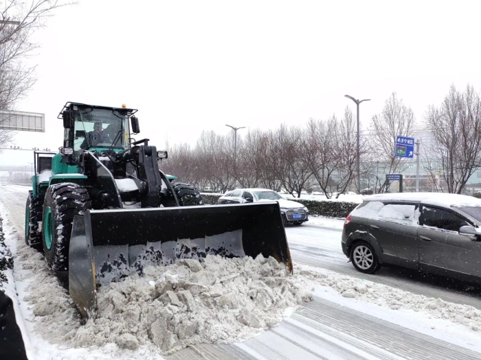 为解决市民的出行问题,,,,,,,尊龙凯时勇担重任,,,,,,,紧迫安排十余台纯电装载机,,,,,,,对任城区古槐路、十五中校区,,,,,,,高新区崇文大道、德源路、济微高速路口等主干道开展扫雪除冰作业,,,,,,,将路面的积雪整理得干清洁净。。。。