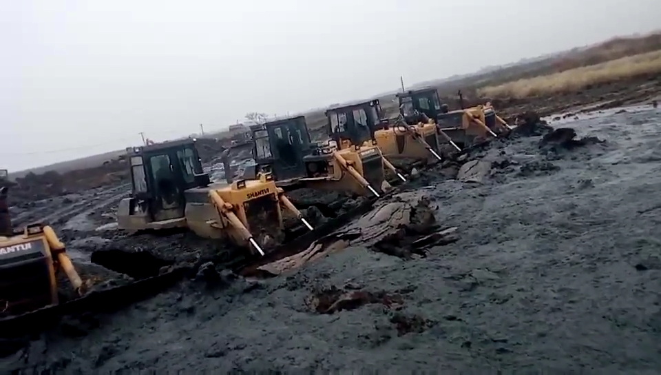技巧五:在泥泞松软的工况推土时,,,,,,,推土机容易陷车,,,,,,,以是每铲推土量不可过大,,,,,,,行驶途中只管阻止停歇、换挡、转向和制动,,,,,,,须要时用2挡推土。。。。若是遇到履带打滑的情形,,,,,,,可适当提升铲刀镌汰推土量,,,,,,,若推土机仍不可前进,,,,,,,则可挂倒挡退却。。。。